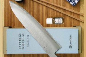 je fais beaucoup de poisson –> #8000 en sus. Toujours étape par étape, un passage sur cette pierre à aiguiser plus fine après la succession des grains de #1000 et #3000, pour arriver à un tranchant d’une précision sans pareil.