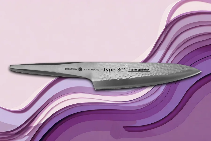Le couteau Porsche entre dans la catégorie des couteaux qui tiennent sur la tranche, cet aspect est particulièrement remarqué dans les couteaux de table. De nombreuses copies ont émergé dans les années 2000 mais Chroma a constamment rehaussé le niveau de qualité de ses produits ce qui a été bien perçu. La collection se décline en trois gammes : Chroma Type 301, Type 301 HM anti-stick et Chroma Turbo.
