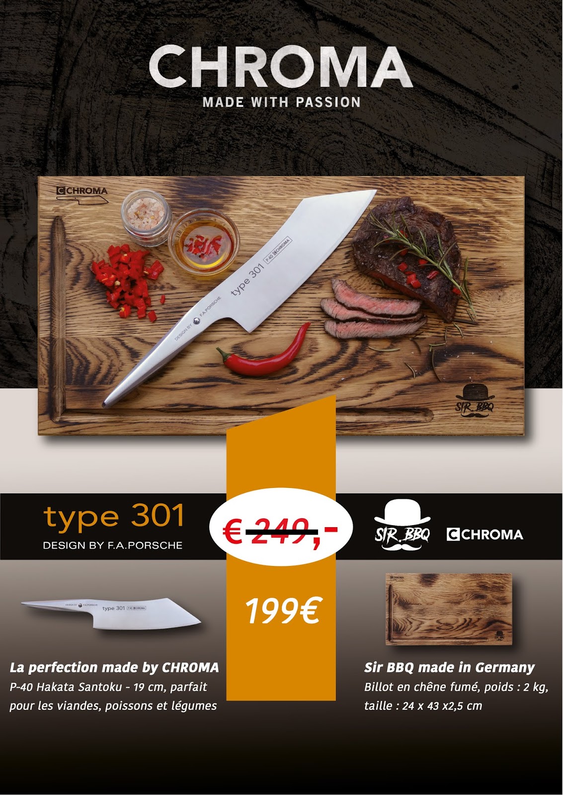 Un couteau intrigue dans la collection Type 301 Design by F.A. Porsche, le Santoku Hakata.