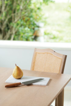 Lors d’une entrevue récente, Mme Misa Kuromoto, la designer de Kasane, a partagé son objectif : créer des lignes d’une pureté telle qu’elles semblent disparaître. Et il est indéniable que c’est une réussite. Les formes géométriques simples représentent souvent un défi pour les fabricants. Dans nos intérieurs, la simplicité est synonyme de luxe. De plus, l’ajout de bois permet d’embellir une pièce en introduisant la nature à l’intérieur. C’est particulièrement remarquable avec Kasane, grâce à son grain de bois sauvage unique. Chaque pièce raconte ainsi son histoire, puisée dans la nature japonaise.