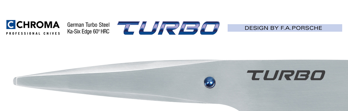 Découlant de cette notion, nous sommes fiers aujourd’hui de vous annoncer la sortie prochaine d’une nouvelle série Chroma (sans rapport avec le Japon si ce n’est qu’on y a insufflé le meilleur de cette méticulosité nippone). Le « couper » Sport Type 301 va avoir un grand frère, le « couper Turbo ». C’est une dynamique nouvelle, produit situé entre les aciers d’une seule nuance et les aciers feuilletés. Un acier allemand « porté à ébullition » à 60° HRC avec une nouvelle technique d’affûtage en usine en six étapes au lieu d’une. Les premiers retours sont stupéfiants. Tel chef qui cuisine tous les jours avec depuis 4 semaines : »le couteau coupe aussi bien qu’au début ». On n’en espérait pas tant.
