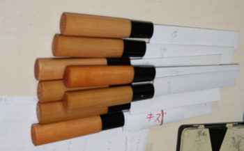 Chroma Dorimu est dans un superbe érable norvégien brun /rouge. Chroma Itamae en bois d’ébène. Nous suivons donc une grande variété de manches.