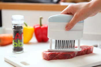 Faites des économies d’énergie avec notre attendrisseur à viandes qui permet d’accélérer la cuisson. Et d’adoucir les fibres de la viande, la rendant plus goûteuse. Elle est aussi cuite uniformément dès lors, sans perte de jus. Fait de plusieurs dents en métal aiguisés à la main, celui-ci bénéficie de deux astuces supplémentaires : un nettoyage facile en un tour de main et une surface 100 % utile y compris aux bords (montage des dents en étages). Chaque dent du peigne est aiguisée à la main !