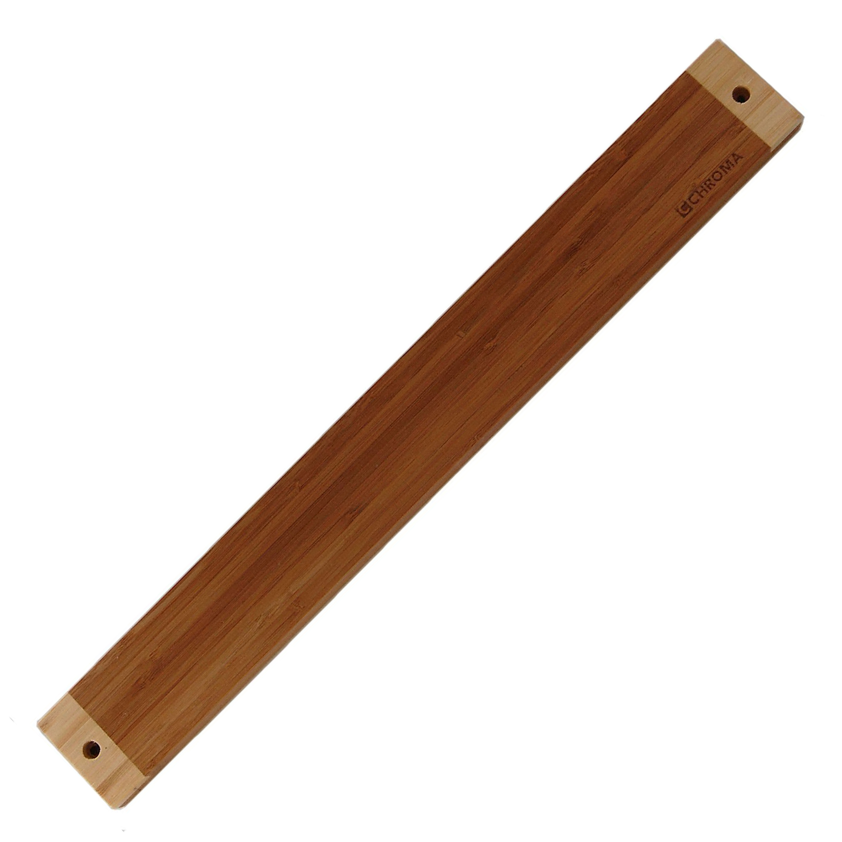 Barre murale magnétique pour couteaux de cuisine permettant de ranger vos couteaux de façon sécurisée. Composée de huit aimants extra-forts (la plupart des barres dans le commerce ne vont pas au-delà de six), en bambou pour ne pas rayer vos lames. Vis fournis.