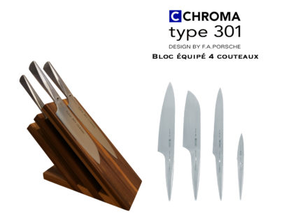 Caractéristiques techniques des couteaux CHROMA Type 301 Design by F.A. Porsche :