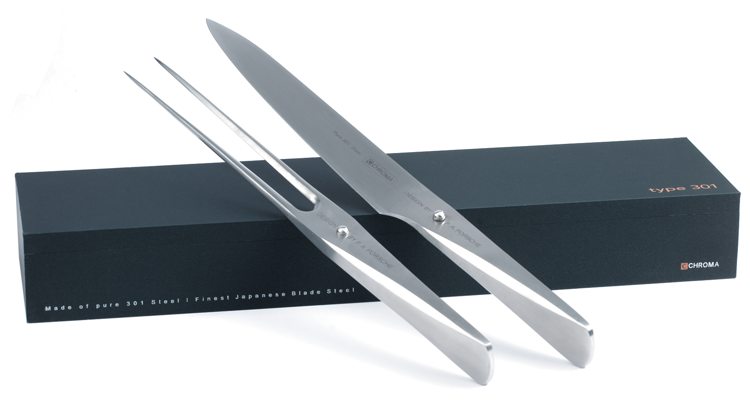 Le set à découper Type 301 Design by F.A. Porsche. Pour réussir avec brio vos découpes de volailles et autres viandes le coffret bois très chic réunit :