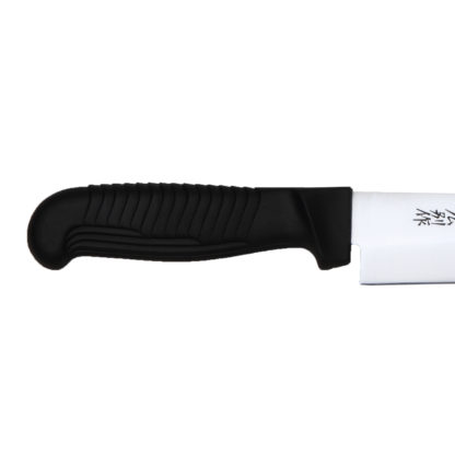 Les couteaux de boucher japonais, comme on le voit avec la manufacture Masahiro, leader au Japon dans la découpe de viande, ne sont pas si différents des formes et ergonomies que l’on connaît de part chez nous sur nos couteaux de boucher. La forme du manche chez Masahiro avec la série MFC est très similaire à un manche de boucher classique et n’a rien de purement traditionnel car sa forme avec garde et les matériaux qui composent le manche sont établis de longue date partout à travers le monde comme étant la solution la plus simple alliant sécurité et efficacité lors de la découpe des aliments. Masahiro a le souci du détail et va utiliser des matériaux pour que le manche soit plus durable. Son manche est antidérapant et facile à entretenir. En tant que modèles pour professionnels ils sont conçus pour résister aux exigences des environnements de travail intenses et dont les finitions de fabrication minimisent le risque de glissement et de fatigue lors de longues sessions de découpe. Bien que Masahiro utilise des matériaux de qualités et un design recherché pour ses manches c’est au niveau de l’acier que la grande différence de résultat se fera entre les couteaux de bouchers japonais et les autres.