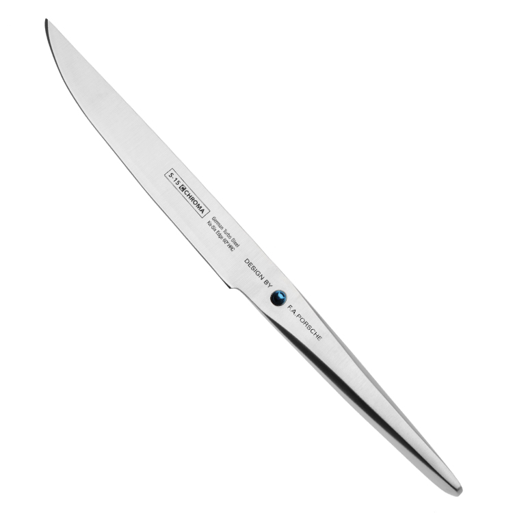 Le couteau à steak Design by F.A. Porsche de la gamme Porsche Turbo est vendu à l’unité et peut servir de grand office universel (13 cm). Comme il se doit nos couteaux à steak n’ont pas de dents pour ne pas déchirer la viande. Ils tiennent debout sans porte-couteaux. Le design à manche inversé fera sensation auprès de vos convives. Les Porsche Turbo ont une longévité de coupe accrue.