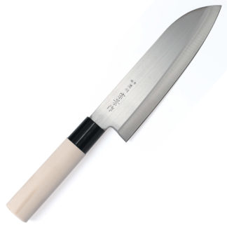 Servant dans 90% des tâches courantes en cuisine, c’est le premier couteau de cuisine à posséder. Il permet de travailler la viande et les légumes avec aisance. C’est l’alternative japonaise au couteau Chef.