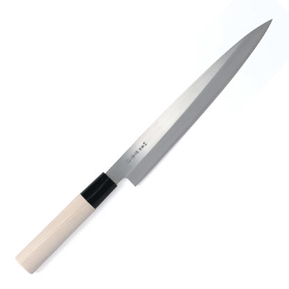 Fine et rigide, cette lame sert à travailler le poisson, notamment les découpes les plus délicates, écartant les fibres sans les casser. C’est le complément au Deba en cuisine japonaise traditionnelle et set de plus en plus d’alternatives aux couteaux flexibles genre filet de sole car permettant plus de précision.