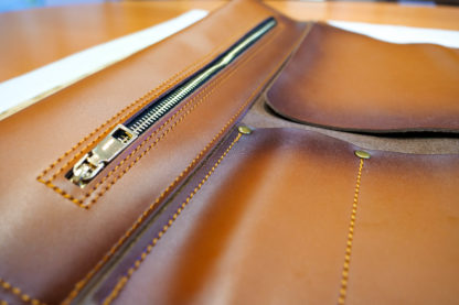Le poids à vide de la mallette est de 1,1 KG. L’épaisseur du cuir est de 3 mm (surface fermeture) et 6 mm en double couche sur les parties pochette et rangements (85% de la longueur de l’étui).