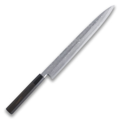 Damasquinage Suminagashi complexe de 32 couches pour les modèles ambidextres et 16 couches pour les couteaux droitiers. Toujours différent, chaque pièce est unique.