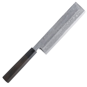Damasquinage Suminagashi complexe de 32 couches pour les modèles ambidextres et 16 couches pour les couteaux droitiers. Toujours différent, chaque pièce est unique.