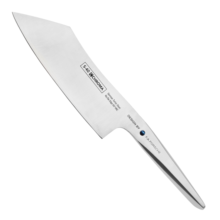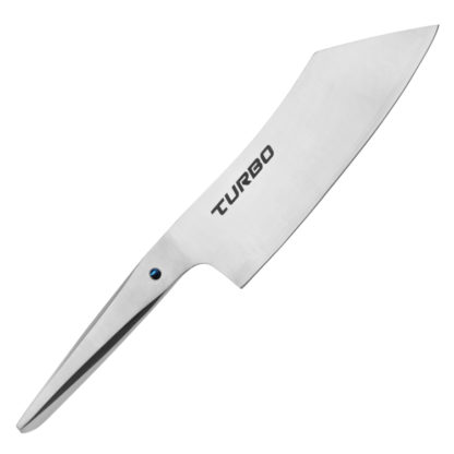 La gamme Turbo est l’upgrade de la gamme Type301 avec le passage sur un acier allemand chauffé à haute température pour atteindre les 60° Rockwell, une première dans l’industrie de l’acier européen permettant une performance de coupe des aciers japonais à 60°HRC et apportant une plus grande souplesse à l’acier qui absorbe mieux les chocs et ondes de vibrations. La gamme Turbo s’habille d’une perle bleu comme bille sensorielle pour se différencier de la gamme éponyme de la marque CHROMA. Un design intemporel qui est le seul manche métal à s’être imposé sur le marché plébiscité par la critique et les cuisiniers du monde entier.