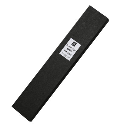 Kasumi Kuro est la fusion de plusieurs techniques à commencer par un noyau central revêtu de 32 couches (32 paires et 32 impaires) sur sa moitié inférieure et d’un martelage haute-fréquence en partie haute. C’est aussi la fusion d’influences puisées dans le passé (manche classique japonais octogonal) et de couleurs actuelles pour seoir aux cuisines actuelles. Kasumi Kuro est un concept unique dans la coutellerie japonaise de choix par la couleur.