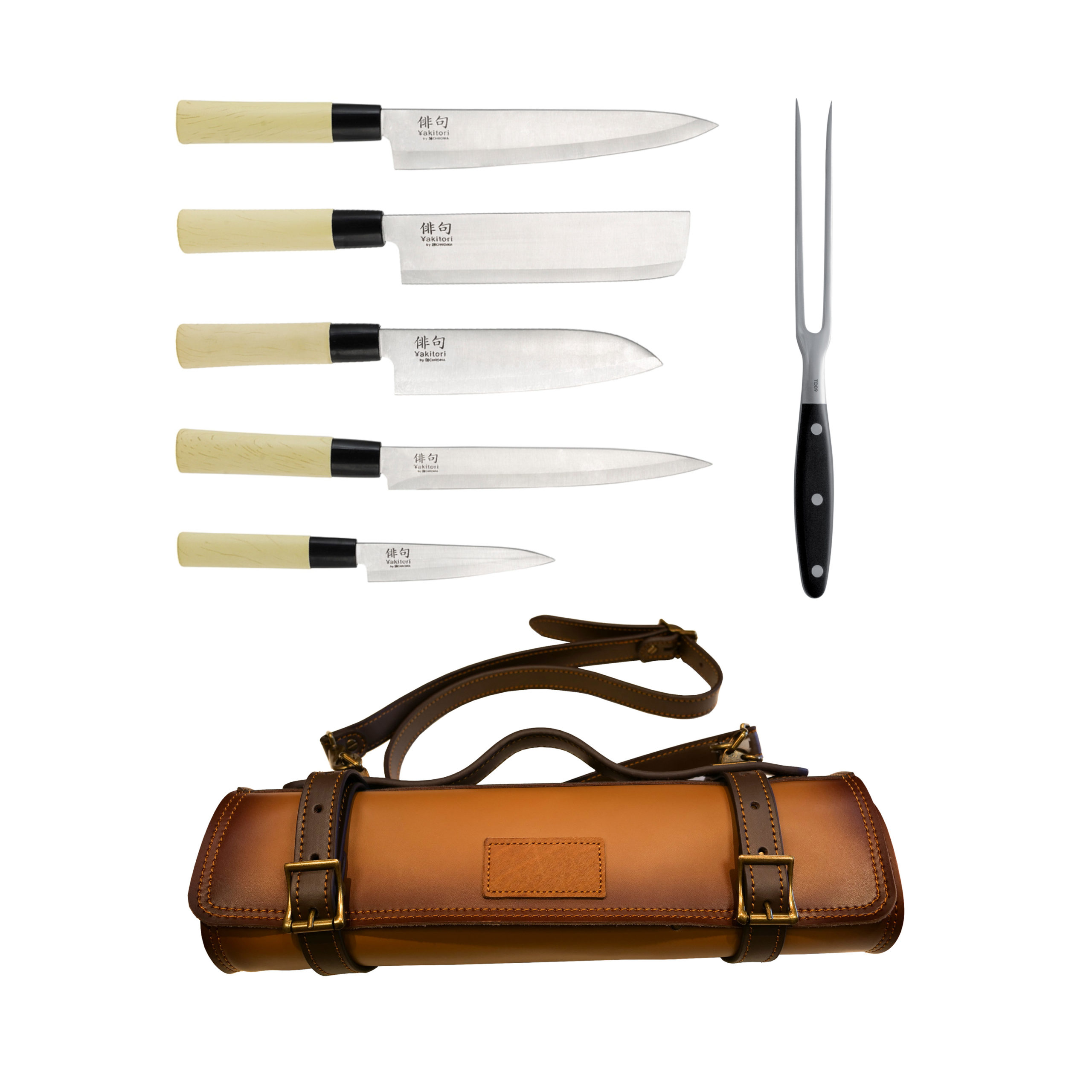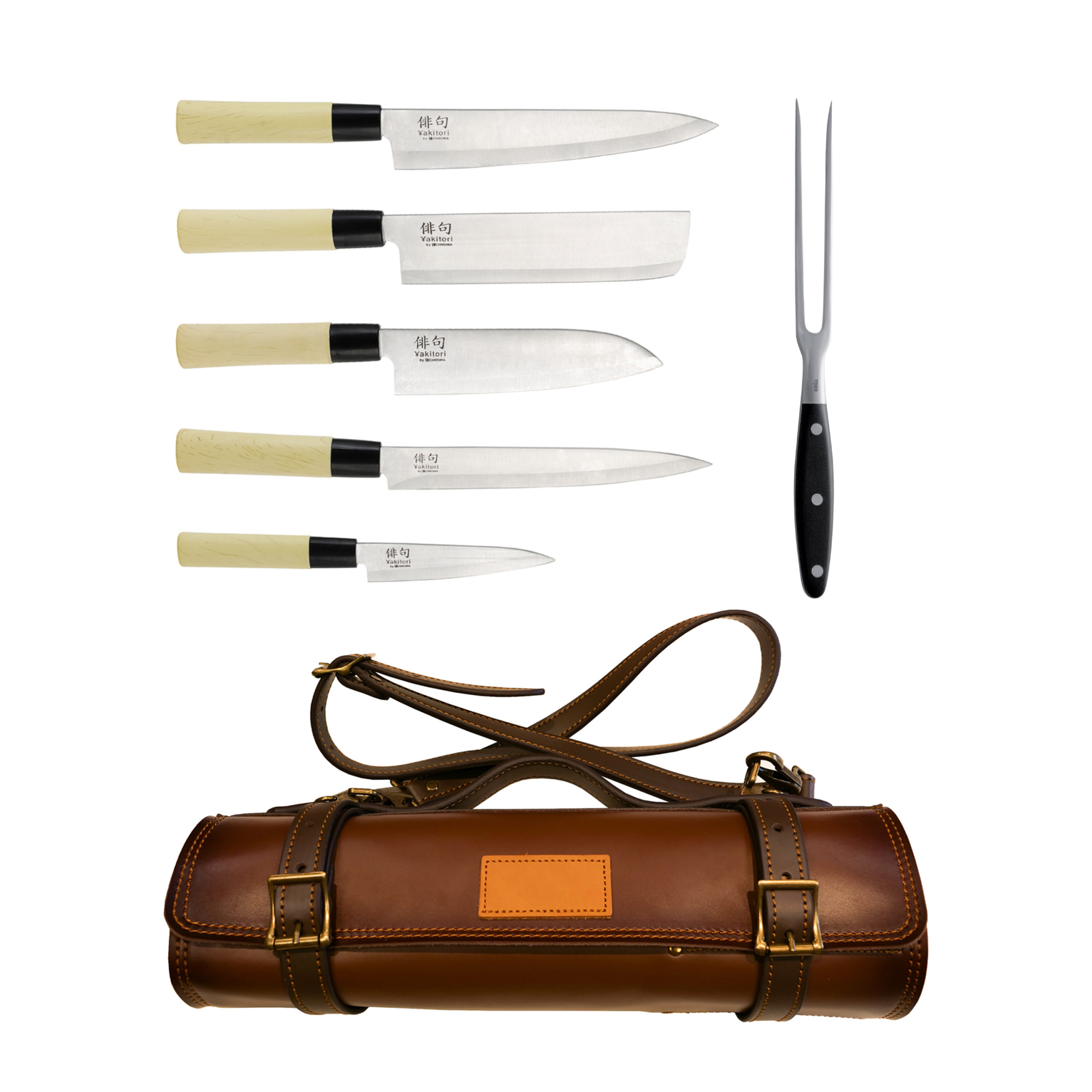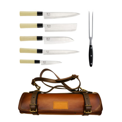 Mallette en cuir équipée 4 couteaux Haiku Yakitori + fourchette