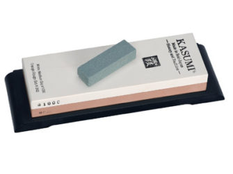Kasumi est un fabriquant de couteaux japonais mondialement réputé pour la qualité de ses produits. Les pierres à aiguiser produites par ce coutelier sont à la hauteur de cette réputation. La pierre K11 sert à l’aiguisage correctif et à l’entretien régulier de n’importe quel couteau japonais y compris les plus hauts de gamme. Cela inclut naturellement tous les couteaux Kasumi, mais aussi CHROMA, Takamura, Masahiro et autres marques japonaises ou européennes. Le grain de 1000 sert à l’entretien régulier, de façon préventive avant que le couteau ne coupe plus. Le grain de 240 est plus abrasif pour rectification d’une lame entièrement émoussée, avant passage sur le côté 1000. L’aiguisage procuré par cette pierre peut être complété par l’emploi successifs de pierres plus fines comme la K12 3000/8000.