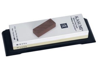 Kasumi est un fabriquant de couteaux japonais mondialement réputé pour la qualité de ses produits. Les pierres à aiguiser produites par ce coutelier sont à la hauteur de cette réputation. La pierre K12 sert à la finition de n’importe quel couteau japonais y compris les plus hauts de gamme. Cela inclut naturellement tous les couteaux Kasumi, mais aussi Chroma, Masahiro et autres marques japonaises ou européennes. Le grain de 3000 est utilisé pour le second cycle d’aiguisage, le 8000 sert au post-polissage des couteaux très durs (entre autres les damas) et au démorfilage final.