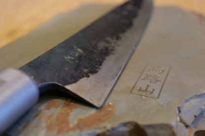 Comparées aux pierres en céramique qui représentent 99,9 % du marché, les pierres naturelles se sont formées il y a environ 70 millions d’années à base de dioxyde de silicium, elles sont plus stables et ne se creusent pas aussi rapidement que les pierres synthétiques. Celle-ci est plus large que les autres et offre donc une grande surface d’aiguisage pour grandes lames, couteaux sashimis, couteaux à thon, etc… Le temps de trempage est plus long puisqu’elles n’absorbent pas aussi rapidement, comptez au-moins 30 minutes. Le temps de trempage est un élément souvent négligé, mais primordial pour stabiliser la structure de la pierre, le bon timing s’obtient avec le temps et l’expérience.