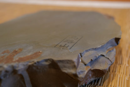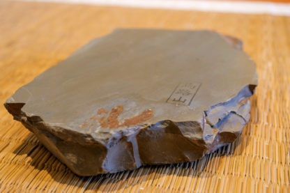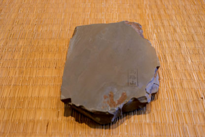 Cette pierre provient de la région de Kyoto, il n’y en a plus beaucoup sur le marché. Il existe encore quelque pierres brutes non taillées car les gisements sont épuisés depuis une trentaine d’année. Elle n’est finie que d’un côté. Chaque pierre est unique.
